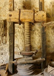 Se non ricordo male, era detto anche mòneche de trappüte il paletto centrale del torchio dei frantoi oleari, intagliato come una filettatura, sotto il quale si impilavano i fiscoli (i fìšque) pieni di pasta delle olive frante per la loro spremitura.