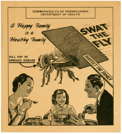 Il Dipartimento della Salute dello Stato Pennsylvania nel 1900 invitava le famiglie ad usare lo schiacciamosche (swat the fly =schiaccia le mosche)
