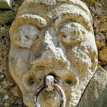 Il sostantivo indica un mascherone antropomorfo (scusate il termine tecnico: significa dalla forma umana) di pietra scolpita rozzamente, che veniva collocato su una parete esterna di un edificio, e dalla cui bocca pendeva un cerchietto di ferro cui si legavano i cavalli o le bestie da soma.