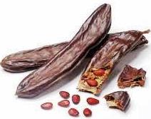 Frutto del carrubo (Ceratonia siliqua), albero sempreverde con tronco corto e largo, foglie di colore verde scuro, fiori rossi a grappolo, frutto commestibile a siliqua. Una volta essiccato il frutto diventa di colore scuro e lucido.