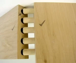 In pratica si utilizza questo cilindretto di legno duro (generalmente faggio) che si inserisce, per metà della sua lunghezza, in un foro eseguito su una delle parti da congiungere, mentre l’altra metà si inserisce nel corrispondente foro (detto anche caletta) praticato sulla seconda e parte diventa solidale con essa per effetto dell’adesivo vinilico.
