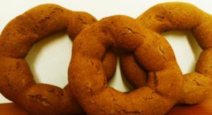 Taralli dolci, speziati con cannella e chiodi di garofano dall’impasto duro e compatto.
