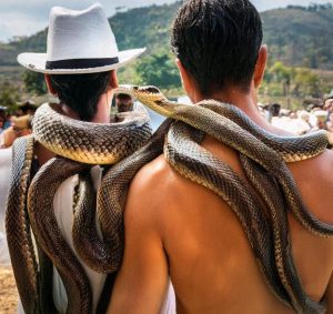 In Abruzzo i serpai (o serpari) avvolti dalle loro graziose bestioline, il primo giovedì di maggio sfilano in processione a Cocullo (AQ), come nella foto che campeggia all’inizio di questo articolo, attinta dal web.