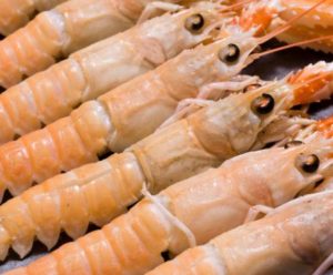 Crostaceo con corpo allungato e tubulare, di colore arancio.