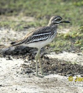 È un uccello mimetico (Burhinus oedicnemus), che vive e nidifica al suolo, lungo il greto di corsi d’acqua. Ha grandi occhi adatti alla caccia crepuscolare o notturna a coleotteri, anfibi e vermi. Proprio per questa sua caratteristica fisica è chiamato popolarmente Occhione.