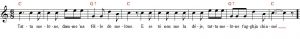 Lo stesso semplice motivo musicale, forse derivato da uno dei segnali militari, articolato su poche note (come la sveglia, il silenzio, il rancio, ecc.), è usato anche in Tezzone e carevöne. (←clicca per ascoltare)