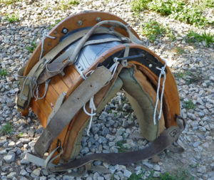 Specie di sella, grossa di cuoio e legno, per asini e muli, che serve per caricarvi la soma (sacchi, legna, ceste e altro).